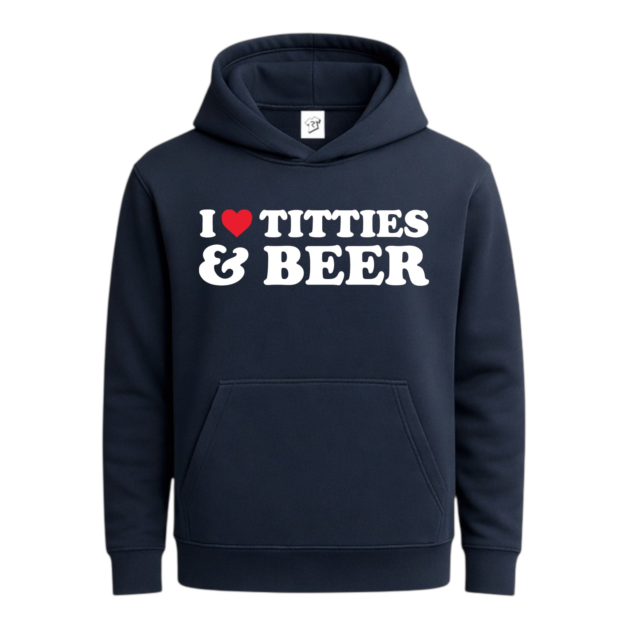 • Tees Club streetwear hoodie I Love Titties & Beer - Hoodie Navy Size S front view