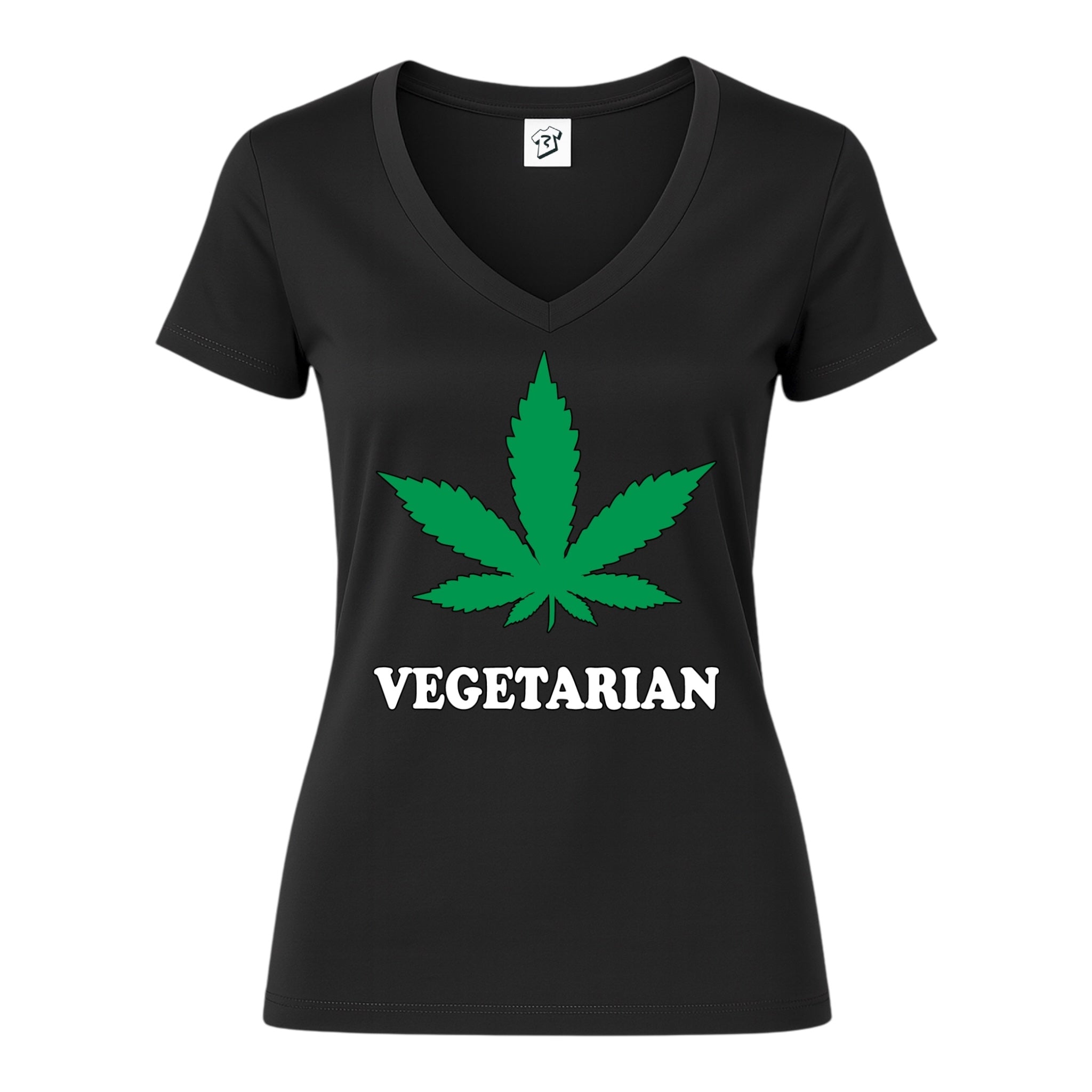 • Vegetarian V Neck Tee with cannabis leaf graphic on a black t-shirt, perfect for modern streetwear style.
